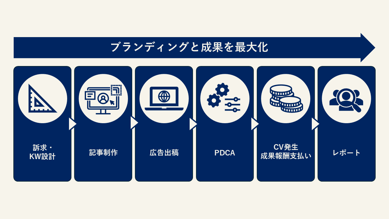 本サービスは、これまでSEOを中心に成果を上げてきた広告主を対象に、リスティング広告による集客を行うアフィリエイト記事の新規制作を支援するもので、訴求設計からサイト構築、運用コンサルティングまでを一気通貫で支援します。広告主が自社ブランドの世界観を維持しながら、低リスクで持続的な成果報酬型での獲得基盤を構築することを可能にします。